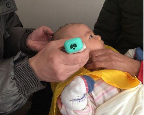 将模具的头部对准孩子的头皮,轻轻按压,确保模具牢固地固定在头发上。