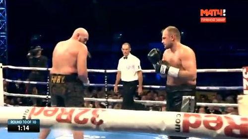 1. 第一回合:泰森·富里利用快速出拳,将亚历山大·乌西克击倒在地,观众们纷纷为他欢呼。